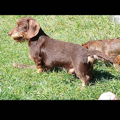 Dajean Chocolate Charmer, Crufts 1st prizewinner, Chocolate and tan 4.5kg, Siring black/tan chocolate/tan pups.